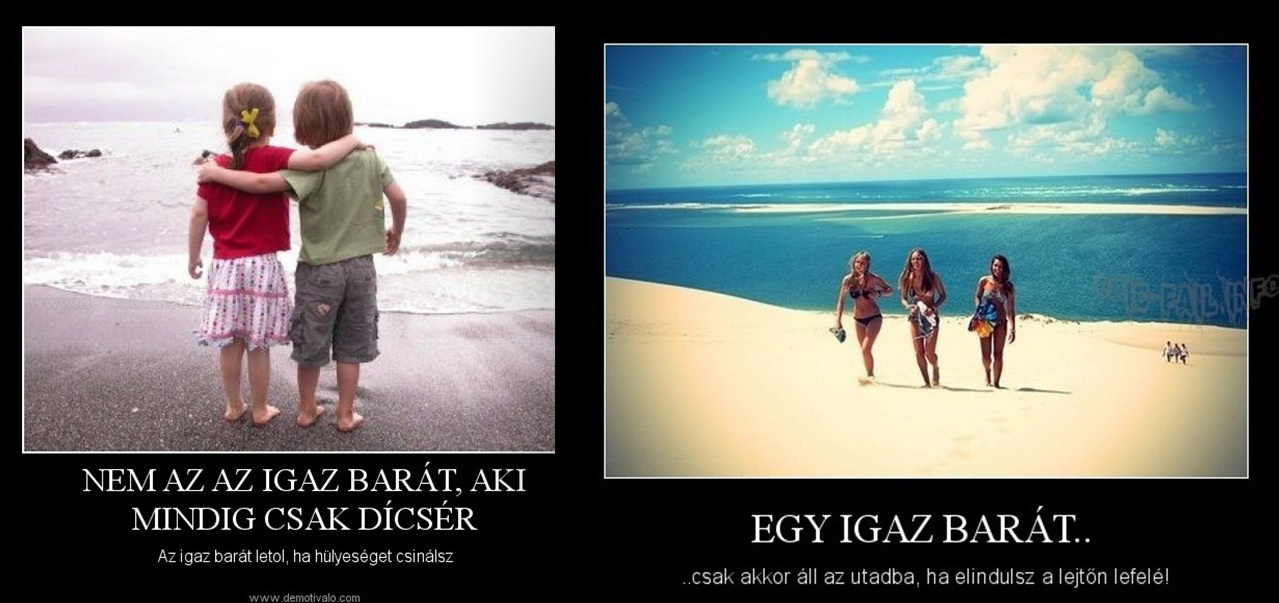 | 1. Nem az az igaz barát, aki mindig csak dicsér, az igaz barát letol, ha hülyeséget csinálsz. 2. Egy igaz barát csak akkor áll az utadba, ha elindulsz a lejtőn lefelé… |